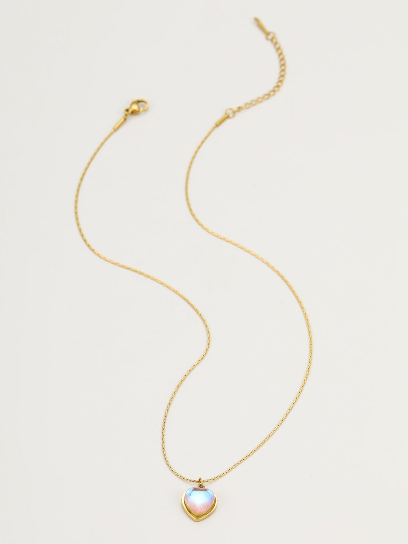 • Delicate heart-shaped pendant with a subtle colorful shine